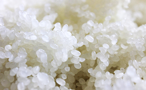 大吟醸造りにおいて、もっとも重要な要素が米に含ませる水分量です。厳しい寒さの中、蔵人たちは最高の蒸米を目指します。