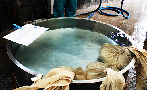 洗米された米を仕込み水に漬けて浸漬します。この浸漬はストップウォッチ片手に秒単位で管理されます。この浸漬で米にどれだけ水を含ませるかが、後々の工程に大きな影響を及ぼすためです。